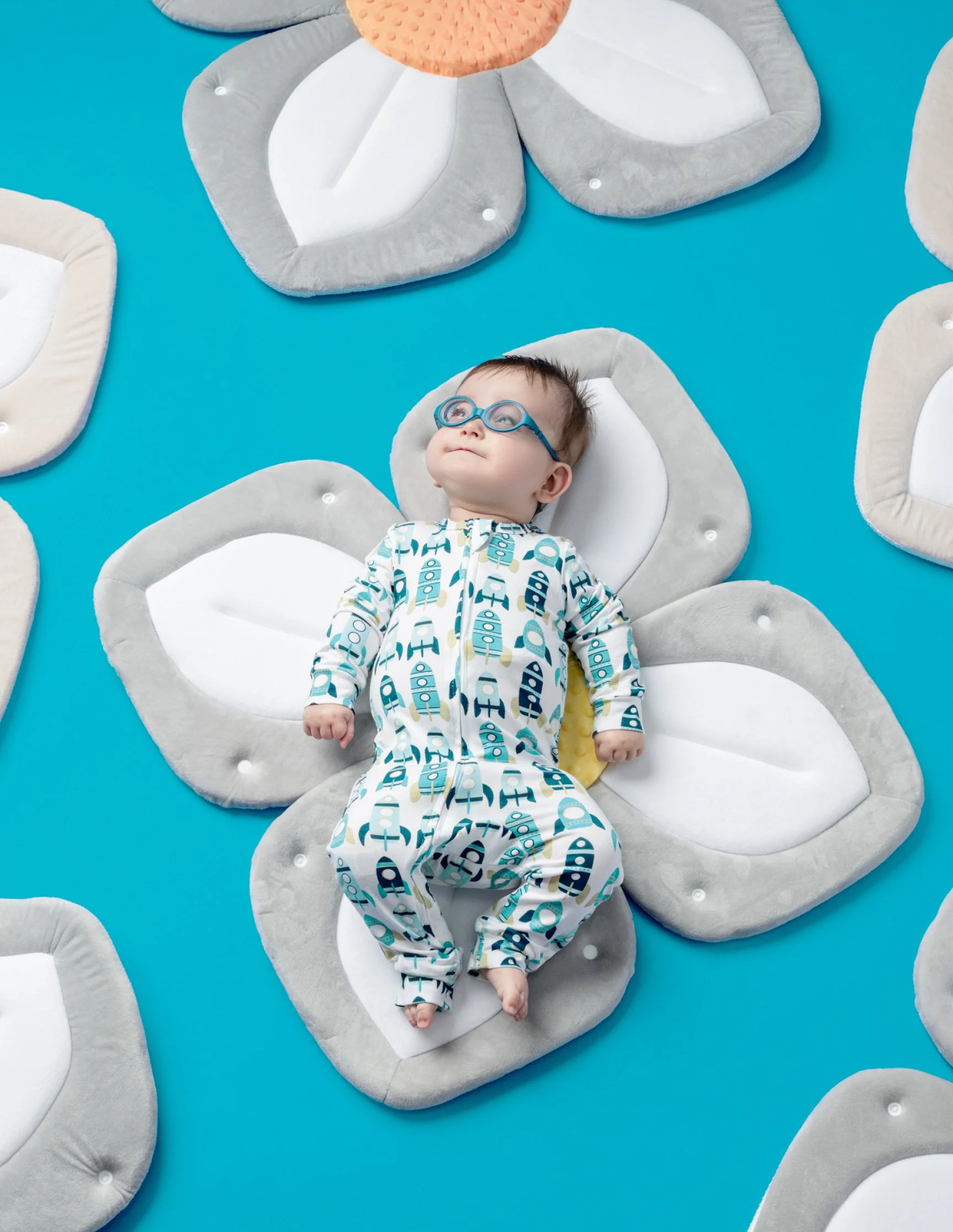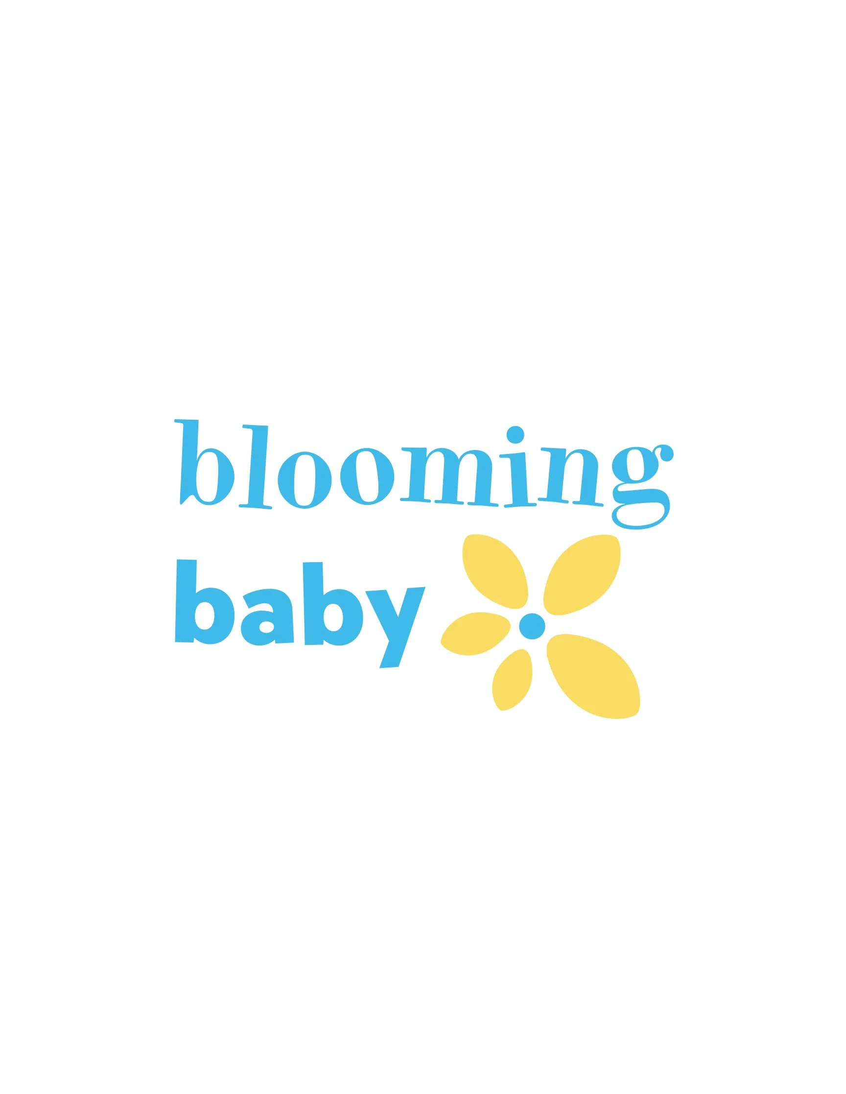 The logo features a stylized flower with radiating petals originating from a central point, gradually increasing in size as they extend outward. This design symbolizes the developmental stages of a baby, starting small and blossoming into a larger, more complex individual. The expanding petals evoke a sense of organic growth, warmth, and nurturing, aligning perfectly with the brand's name and mission.
